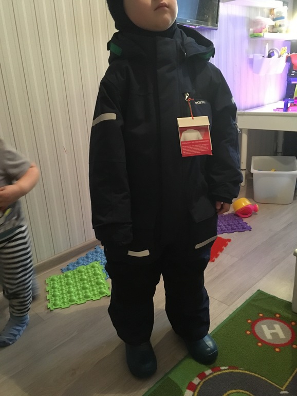 Сын сейчас 104-105 см где-то. У нас дидрик мигиси 110 размера. Глиста в скафандре))))) на следующий год ещё точно хватит. В этом году со всеми утяжками, конечно, можно поносить, но многовато ткани, конечно. На фото мы только-только вышли. Пояс на самом деле ещё чуть ниже находится. В целом носить можно.