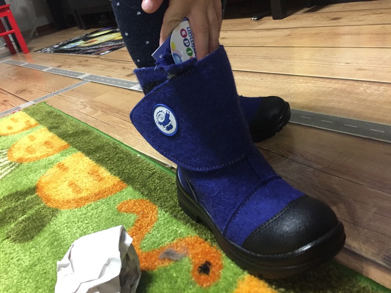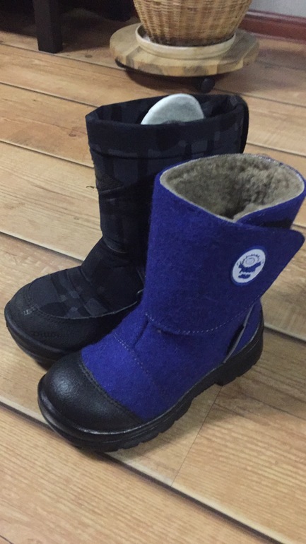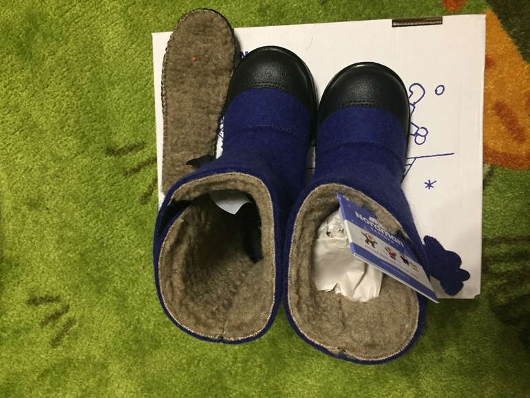 Но конечно меня подкупил цвет и дизайн ( особенно фотки на сайтах). Решили мы с подругой заказать их своим ребяткам. Цена 2300. В принципе средняя цена для всех валеночек в сезон. И вот сегодня забрали из самовывозе. Я брала на выбор две модели на липучке и на молниях. Но на молниях пришёл немного не тот цвет ( темный цвет морской волны((( , поэтому даже мерить не стали. Выбрали, какие изначально и планировали - синие и на липучке.