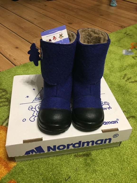Сразу скажу что внешний вид очень приличный: начиная от коробки и вложенного туда фирменного пакета и заканчивая самими валеночками. Сама модель очень похожа на известные всем куомки. Но и все знают, что Nordman делают очень похожие на куомки сапожки модель Lumi. Даже размеры совпадают: стелька 29 куомы полностью совпадает с 29 размером валенок.