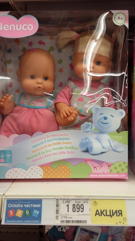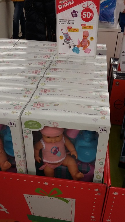 В ДМ на машинки тоже подобная акция была в прошлом году и длилась долго. При том, что в других магазинах обычная цена была 1200-1500. Покупали племяннику. Хлипенькая((( А вчера купила в качестве знака внимания знакомой девочке куклу за 69 руб. Для ее стоимости вполне достойная!