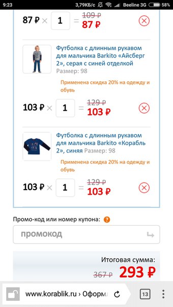 Спасибо))) заказала 6 лонгов за 666 руб))) девчачьи по 119 что ли выходят, на мальчиков по 103.