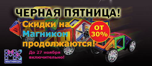Распродажи. Скидки. Акции.На официальном сайте производителя конструкторов магникон.ру с 23 по 27 ноября скидки на все наборы - 30%