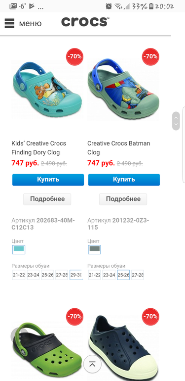 На оф.сайте крокс скидки до 70% на некоторые модели. Например: