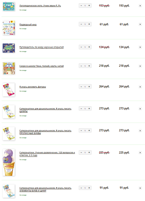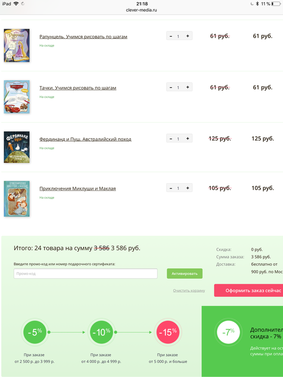 Недавно был шведский стол у них 2500 руб за 15 книг. То есть 166 руб за любую книжку из подборки. Было оч выгодно. Цена моей корзины вместо 7590 руб была 2500 руб -)))