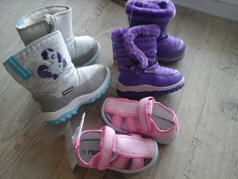 Ну и долгожданный Купивип. Сандали Мursu 340руб, дутики Какаду Литл Пони 540руб и сиреневые 440руб. Цены с учетом доставки,т.к. у нас бесплатных самовывозов нет(