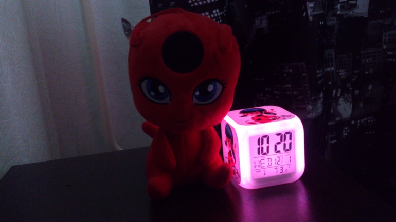 ИгрушкиДошёл до меня один "заказ дочки на НГ". Обожаемый Леди-Баг. Часы-светильник и игрушечка Квами:
