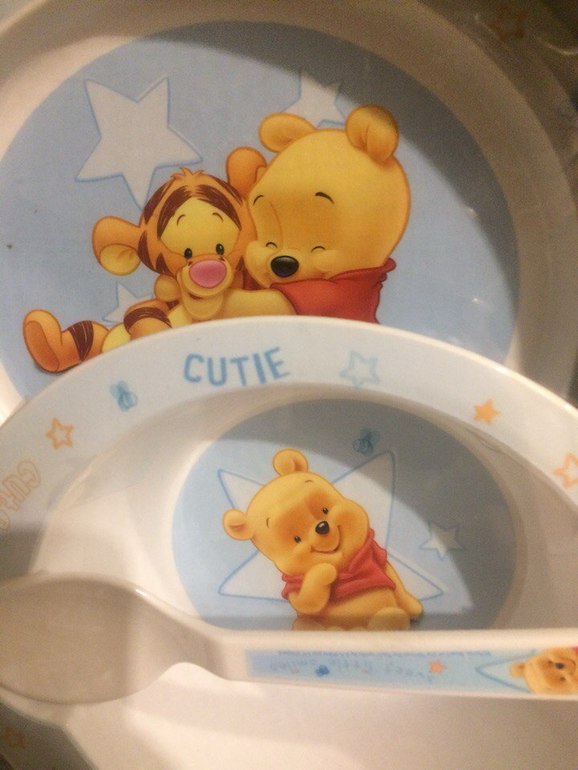 Они очень симпатичные,но...следите за картинками в тарелках, у нас облезли, заметила прям при кормлении кусочек картинки на еде. Хотя мы в них не грели ничего, не резали, очень аккуратно пользовались.