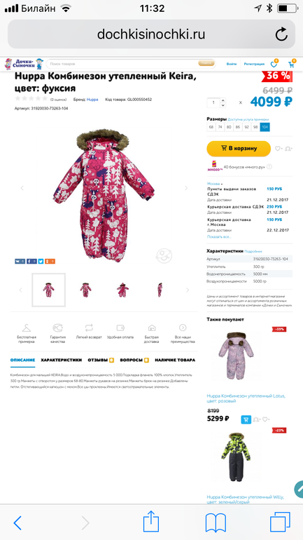 Вчера только забрала с Озон Хуппу и Салве. Оба размер 104.