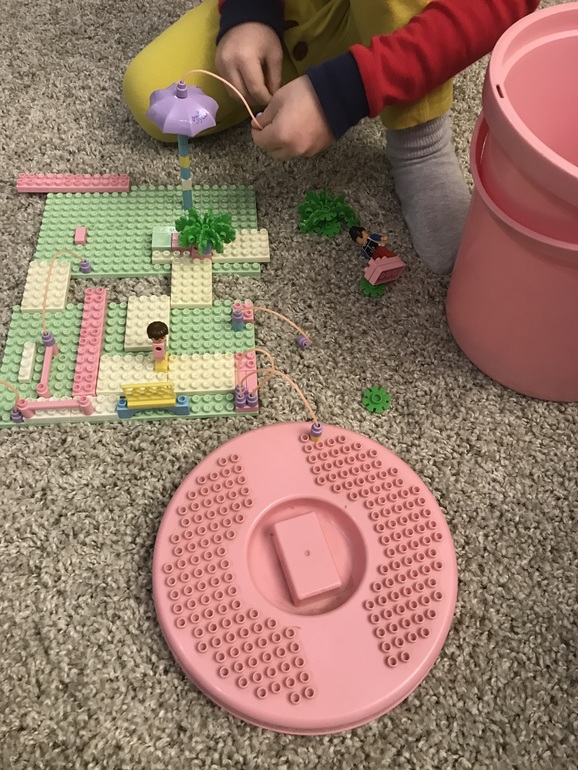 у меня есть такое ведро. поменьше тоже розовое. там квартира тип собирается. на этикетке лего написано) на вид детали точь в точь как на фото