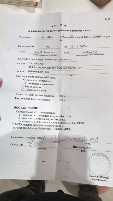 Сегодня тоже получила от них посылку с таким же актом, как у Вас. Расхождение в весе в большую сторону.