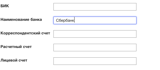 Скорее всего когда вобьёте БИК, остальные реквизиты кроме вашего расчетного счета заполнятся автоматически.