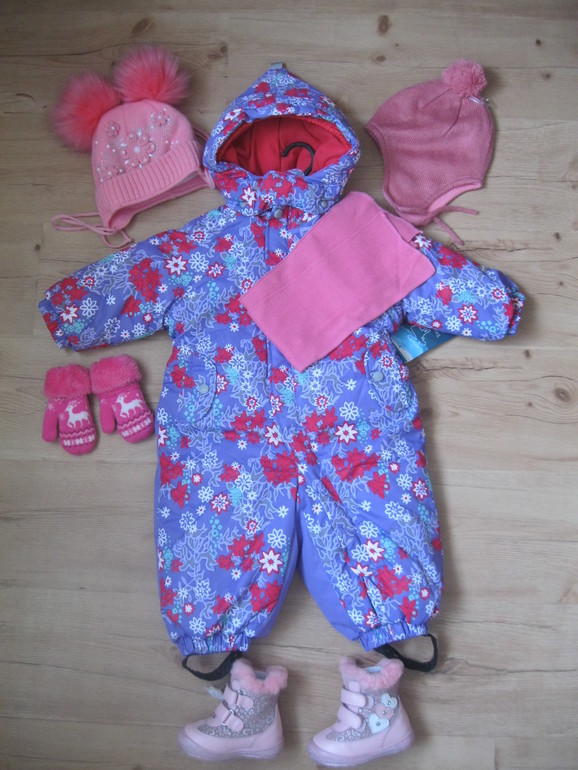 Для младшей пока так, зимой будет 1-1,3г(да да, я купила на вырост верхнюю одежду и обувь ребёнку, которому сейчас 3 месяца)):От старшей остались комплект еврозима и валенки-самовалки. Поэтому искала недорогой и тёплый слитник, и какие-нибудь сапожки\ботинки. Комбенизон ТоккаТрайб, 80размер, брала за 1600 . Понимала, что в конце сезона будут цены ниже, но боялась за наличие размеров (и как оказалось, правильно- у нас в городе уже осенью всё разобрали, даже малышковые, поэтому молча завидую тем, кто купил их за 699))) 300грамм утеплителя, для годовасика пойдёт. Шапки\варежки пока такие, остались от старшей. Смотрю на фото, и понимаю:нужно их менять на что-то не такое розовое, а то глазам больно 😆