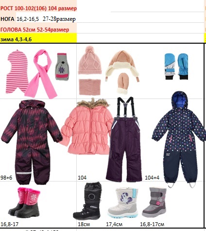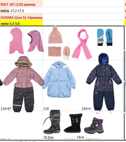 Примерная табличка, делаю такие на каждый сезон. Рост и размер ноги прикидываю по таблицам ВОЗа и моим ощущениям)