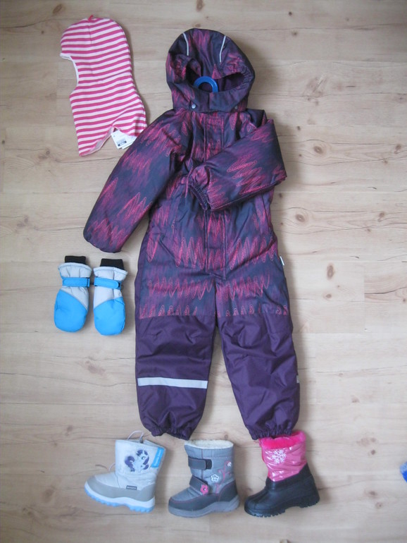 Комбинезон Lassie с той самой распродажи на lassieshop.ru (1250р вышел с доставкой). 180грамм, 98размер (большемерит +6 точно). Планировала на позднюю осень, но мне он показался очень тёплым, полноценно зимним. Так что на осень мы опять без комбеза, зато на зиму 2шт, ладно хоть по размеру немного отличаются)