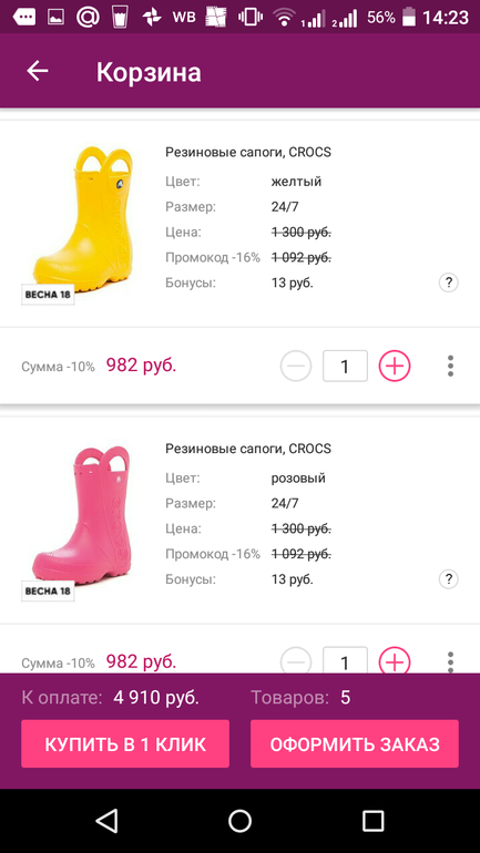 Не знаю, хорошая ли цена.Синий,розовый,жёлтый.С личной 20% выходит ещё дешевле. Помогите с советом , у нас ножка 12,5 см, какой размер взять, нам в марте по лужам походить(на носок,стельку??) и хотелось бы с запасом на лето ) Склоняюсь к 24/7 ?https ://www.wildberries.ru/catalog/1436608/detail.aspx