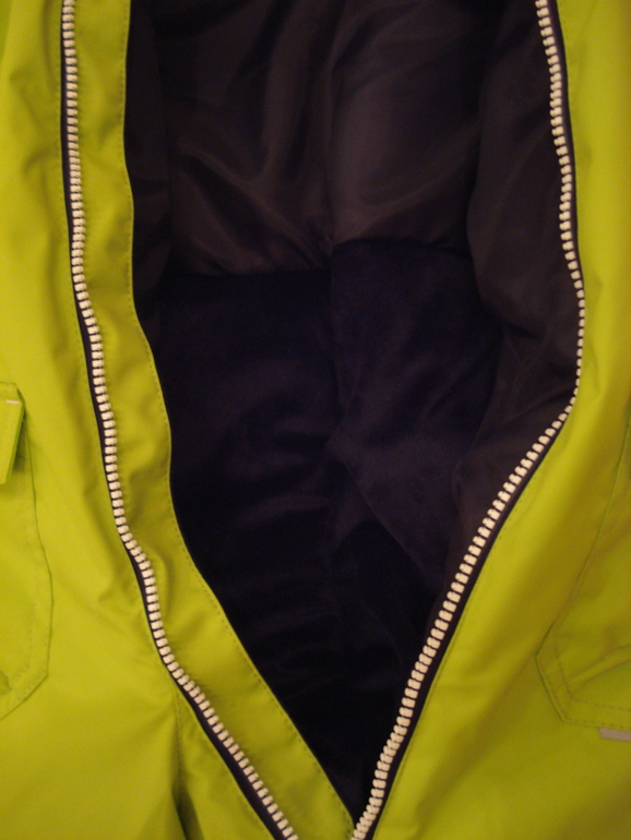 Ткань у брюк похожа на керри, ткань куртки другая - плотная, но гладкая. Водонепроницаемость 5000. Куртка полностью отделана флисом (кроме рукавов), подкладка полукомбинезона и рукава - просто гладкая ткань. На куртке есть внешние и внутренние карманы, снежная юбка, трикотажные манжеты, на капюшоне регулировка объема (если я правильно понимаю предназначение этой липучки). У полукомбинезона есть снежные манжеты и регулировка длины (можно подогнуть и закрепить хлястиками).