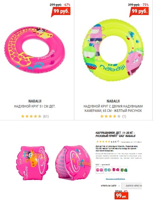 Кроссовки есть и на детей, и на взрослых. У меня был купон на 200 руб, купила круг и нарукавники бесплатно -)