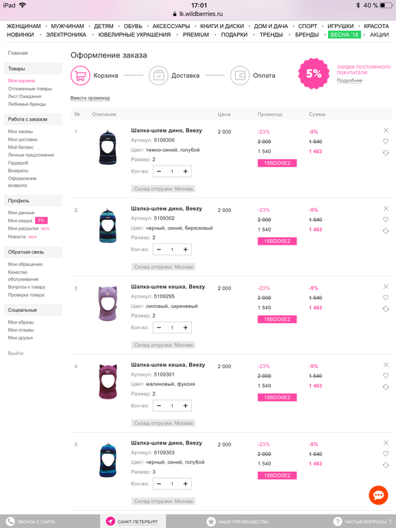 у меня скидка 10 %, а шлемик с ушками получается 1147 р. У кго 15-20 - у тех та же тысяча и будет, наверное