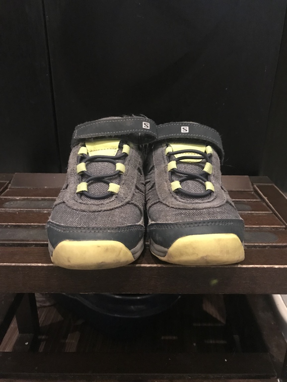 Кроссы Саломон. Примерно 3 сезона активной носки четырёхлетним ребёнком (сад, беговел, самокат и прочие радости). Состояние близкое к идеальному, чуть подтерлась резина на мыске.