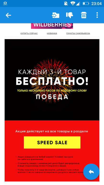У нас два дня было подряд, вечером...Выбрать не из чего совсем, даже моя шопоголичья душа и загребущие ручонки ничего не схватили..Эх, мельчает вайлдберрис.
