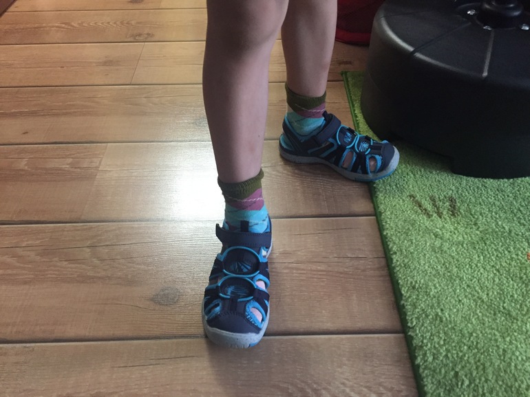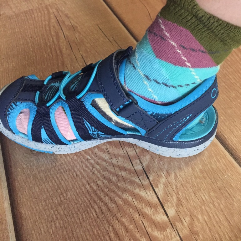 По мне в самый раз). Тем более за лето нога на 2-3 мм, да подрастёт. А если меньше, то дискомфорт будет. Нога тут хорошо зафиксирована, как раз запасик у Вас на ход. И ребёнок говорит удобно)). Больше ничего и не надо).