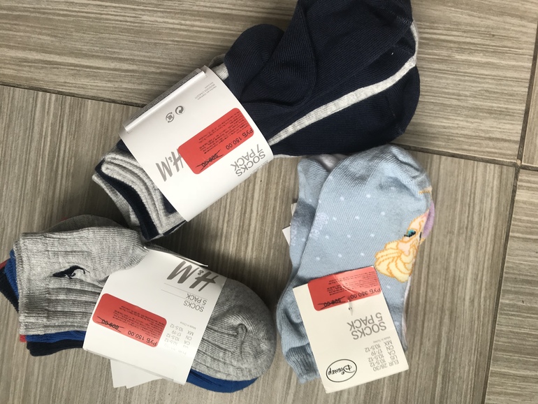 Хотела трусы по скидки у них взять, но в нагем hm акционных не было. А носки с холодным сердцем нам знакомая отдала бу, они всех в катушках. Я их выбросила. Купила своим другие наборы носочек посмотрим как будут в носке.