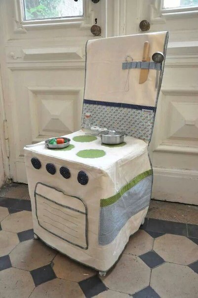Помню, решила я проверить, будет ли дочка в 1.5 года играть в кухню, нарисовала на листе А4 плиту и положила ей на стульчик. До сих пор играет иногда. А кухню до сих пор не купили, так как предстоит переезд. Первый вариант самый симпатичный, надо сделать )))