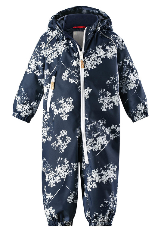 Однозначно Рейма , что на фото лучше, и размер нужен 74 , 80 можно попробовать если ребёнок не худой. Сам комбез просто довольно широкий, если есть возможность закажите на примерку два размера. Дочь носила Рейму 80 размера с ростом 82. Был ещё запас. Особенно рукава очень длинные.