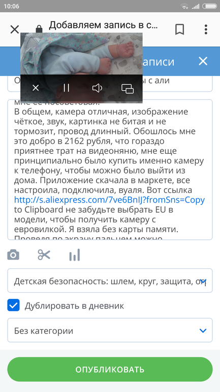 В общем, камера отличная, изображение чёткое, звук, картинка не битая и не тормозит, провод длинный. Обошлось мне это добро в 2162 рубля, что гораздо приятнее трат на видеоняню, мне еще принципиально было купить именно камеру к телефону, чтобы можно было выйти из дома. Приложение скачала в маркете, все настроила, подключила, вуаля. Вот ссылка