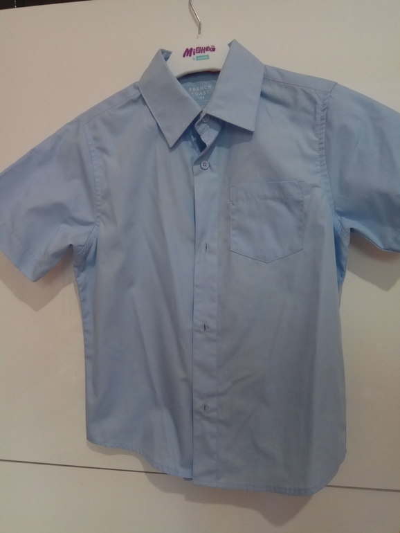 6) Рубашки 2шт белая и розовая и с длинным рукавом и голубая с коротким