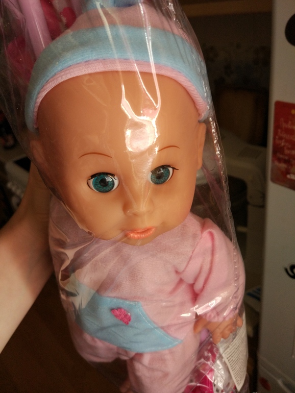 у нас с дм такой был ..гавно главном...коляска однаразовая)..правда наша из пластика была...а пупс пластик)кроме лица)))