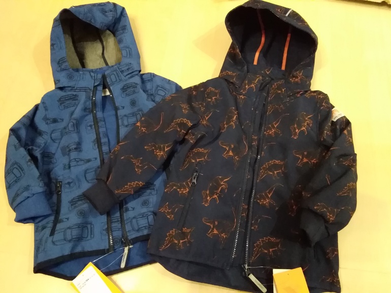 Куртки неширокие, на стройных детей. Фото желтит из-за электрического освещения.