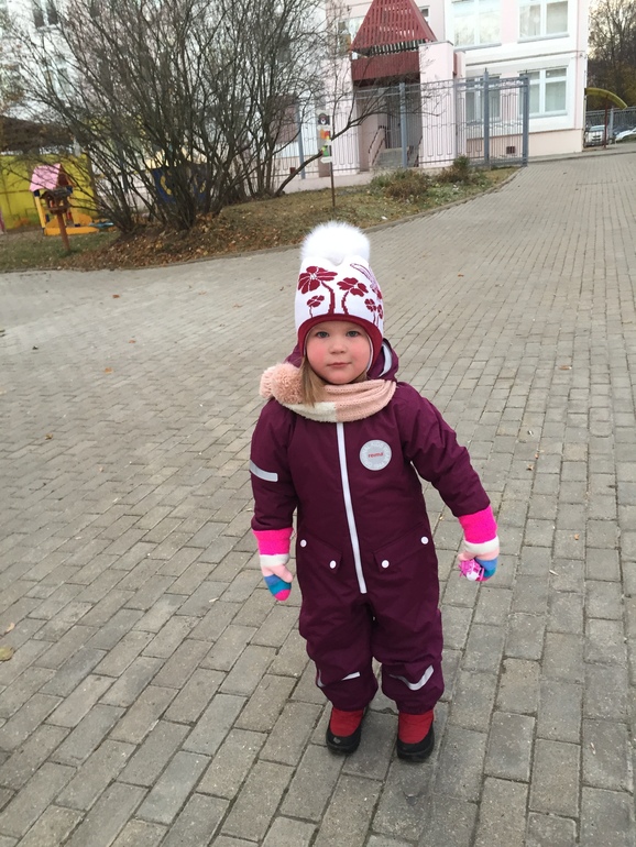 ) со штанами сама понимает, что в непромокайке может и с горки скатиться, и на качелях покататься, а подруги в джинсах нет. когда сухо - выбирает сама какие брюки будут. пока ищу шапку купила ей розовые заколки и резинки.