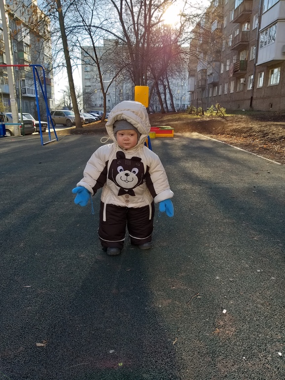 Детская одеждаВсем привет! Нам в конце ноября год, мы 74 см. Сейчас носим доставшийся по наследству комбез, но мне кажется, что малышу совсем неудобно - широкий, тяжелый (это трансформер на овчине). На варежки не смотрите, наши не высохли, взяли от осеннего.
