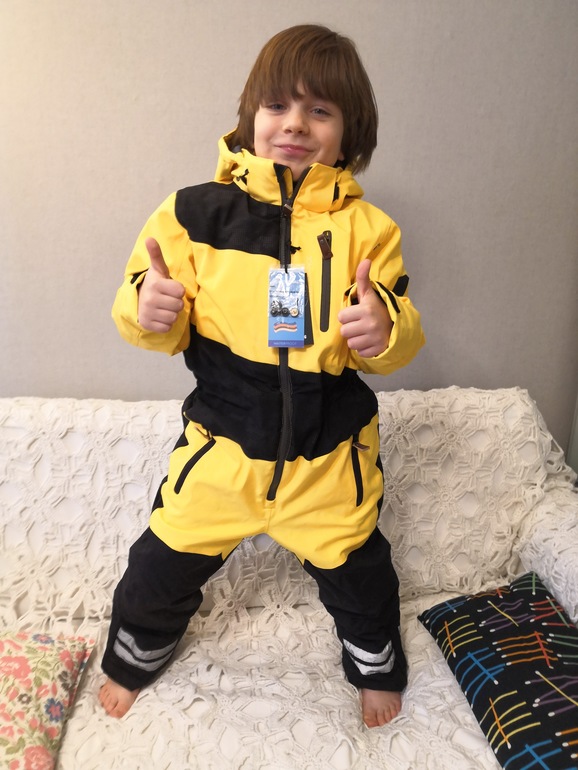 Классный мальчик и классный комбез, но мне кажется неудобно с мотней будет лазить куда-то, вот даже на горку вверх подниматься по идее ноги же поднимать надо.