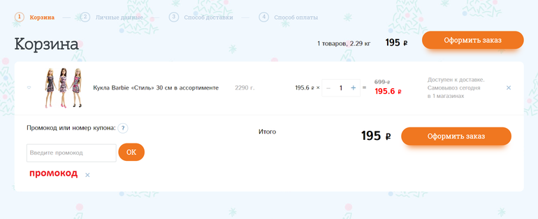 Распродажи. Скидки. Акции.Прислал Кораблик купоны на скидку, однако реально это предложение выгодно только на простеньких Барби: