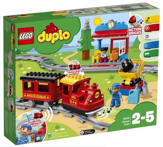 От меня и бабушки с дедушкой получает Лего на паровой тяге (1850р.- ДетМир):