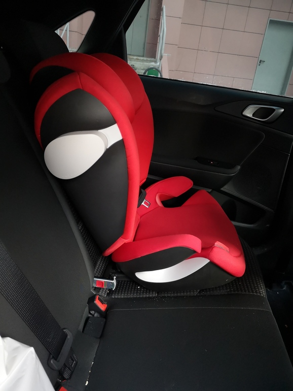 Цвет улёт! Удобный регулирующийся подголовник, усиленные боковины, штуки на боковинах специальные, пластиковые, их выдвигаешь и они принимают удар на себя. Ребёнку удобно, в окно все видит, хоть и сидит теперь ниже)) спинка автокресла не зафиксирована и адаптируется под спинку сиденья авто. Ребёнок крепится штатными ремнями.