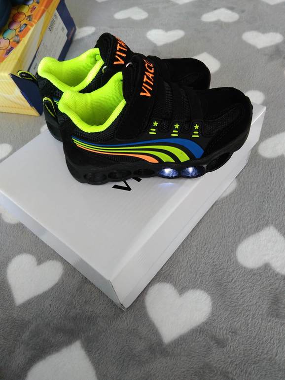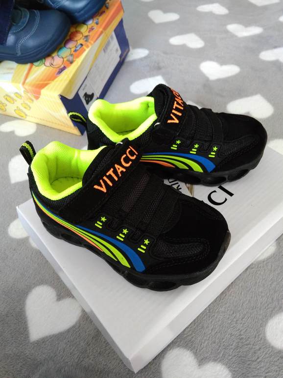 1. Кроссовки Vitacci, размер 26 ( а я заказала 25😄) в принципе, размер подошёл с запасом на весну. Кроссы очень крутые, светятся, ногу держать отлично, видно что удобно ребенку. Достались за 1250 руб.