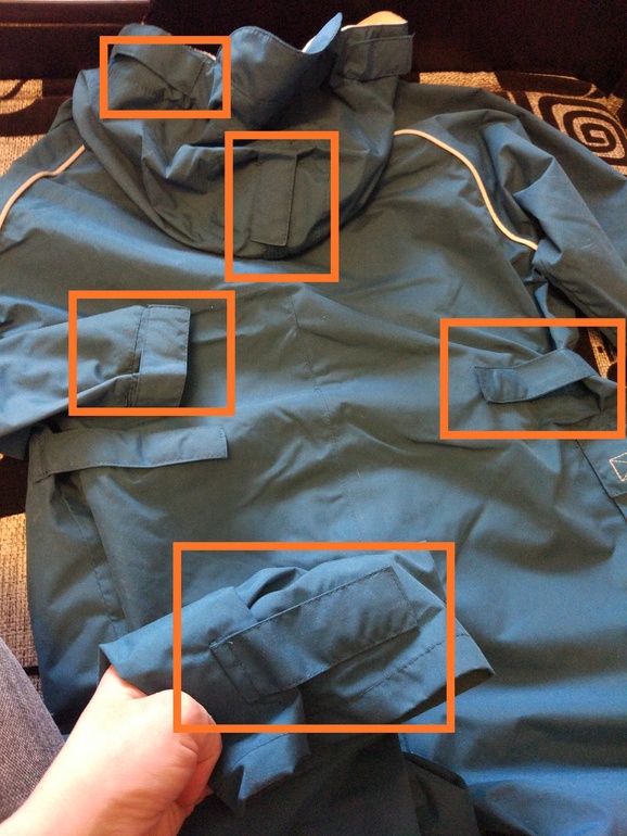 Утяжки по бокам, на капюшоне, на ножках и ручках, но даже это пока не спасает)) велик