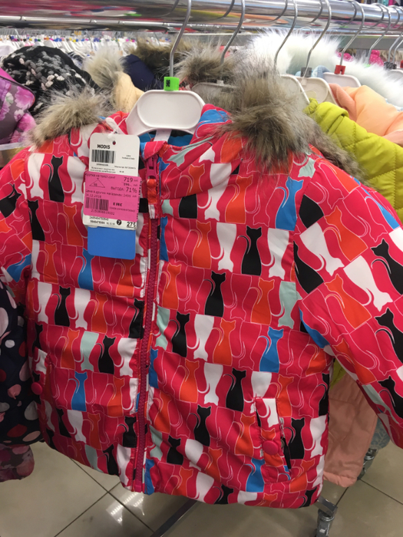Спасибо! Я посмотрела, что это модис, здесь у нас есть магазин модис, но такую куртку я не видела, завтра еще раз съезжу, мне нравится расцветка и принт, дочка обожает котов))