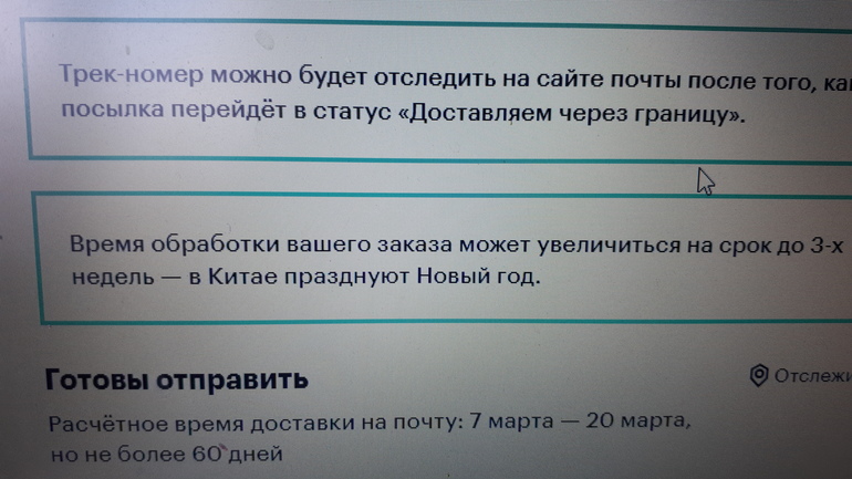 У меня больше недели ничего не меняется. Надпись готовы отправить. Магазин этот же