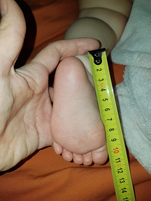 Длина ступни у нас где-то 11 см. Это вроде 18-й размер.