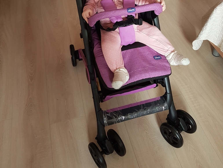 У Чикко расстояние от спинки до ремня пятиточечного ремня в сиденье оказалось всего 13 см. Посадила 8-месячную дочь, и получилось, что она как бы сидит на этом ремне, т.е. съезжает на него. Простого разделителя на бампере у Чикко нет, к слову. И мне показалось, что это неудобно будет ребенку.