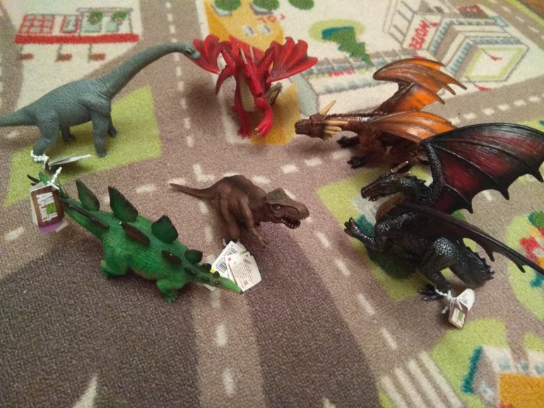 Не знаю размер ваших. Мои двух размеров, были ещё больше и меньше. Елс видела наборы по 3 шт по 300 с чем --о рублей. Двух я для себя купила, Тирекса для сына, он их любит и у нас их несколько, только других размеров