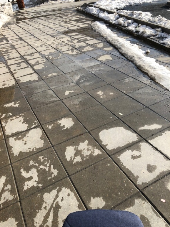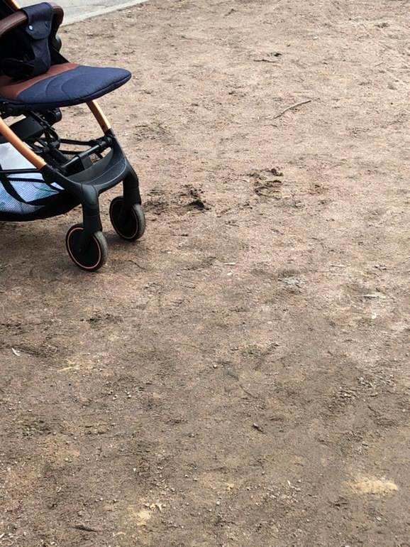 И поехали сразу гулять по нашему обычному маршруту выходного дня: асфальт, немного плитки разного типа, дорожки, парк, гравий.