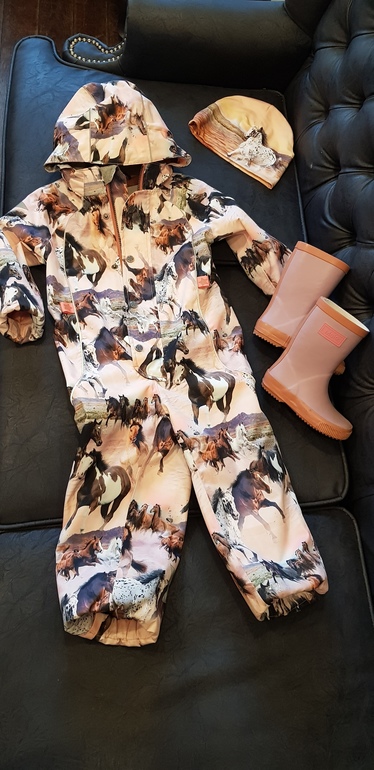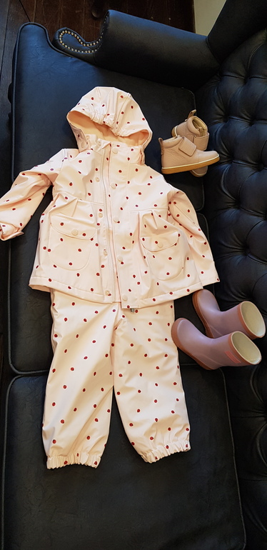 2. Комплект прорезиненный MINI A TURE, шапочка MINI A TURE, сапожки Molo или ботинки Ecco