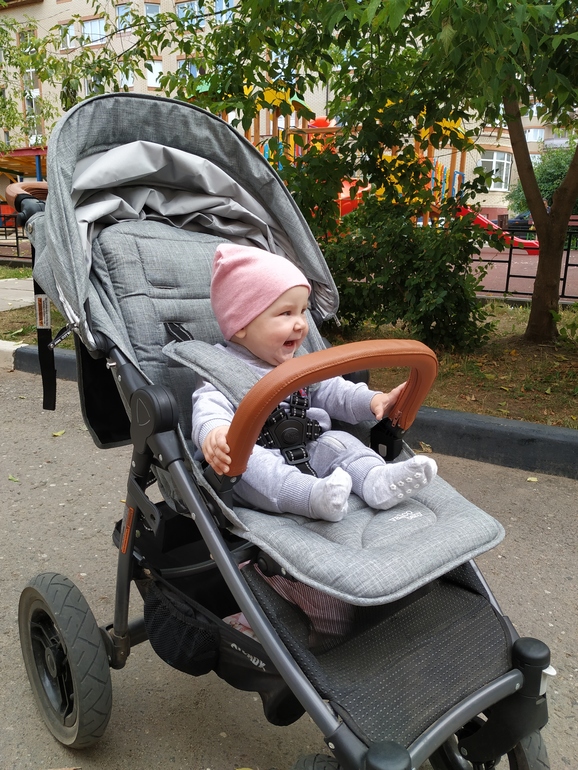 Дополняю. Катаемся. Это ВОСТОРГ! Я давненько столько наслаждения не испытывала. Да, да, сами понимаете, супружеская жизнь после родов-кхм. Ещё и с кучей детей в доме. Так что прогулки с этой малышкой-это такой каааайф, которого давно у меня не было😁 она пушинка! Да, для ее габаритов и надувных колес-это вообще легковушка! Ход божественный, управление мизинчиком. Колеса не стучат и не тупят. Аморта! Божечки, чтож я о ней раньше не знала, взяла бы с люлькой! Там люлечная аморта, я думала-такое только на классике бывает, но тут реально можно покачать вверх-вниз, там пружины. Малышке отлично засыпается и спится. И вся такая ладненькая, полностью меня удовлетворяет в эстетическом плане. Помните, раньше, ещё лет 5 назад, коляска на черном шасси-уже модно:) а тут и ткани такие приятные и глазу и на ощупь. Ну вот реально. У меня бишечка в сером меланже. Так тут ничуть не хуже ткани. Ну, может, экокожа подешевле смотрится...