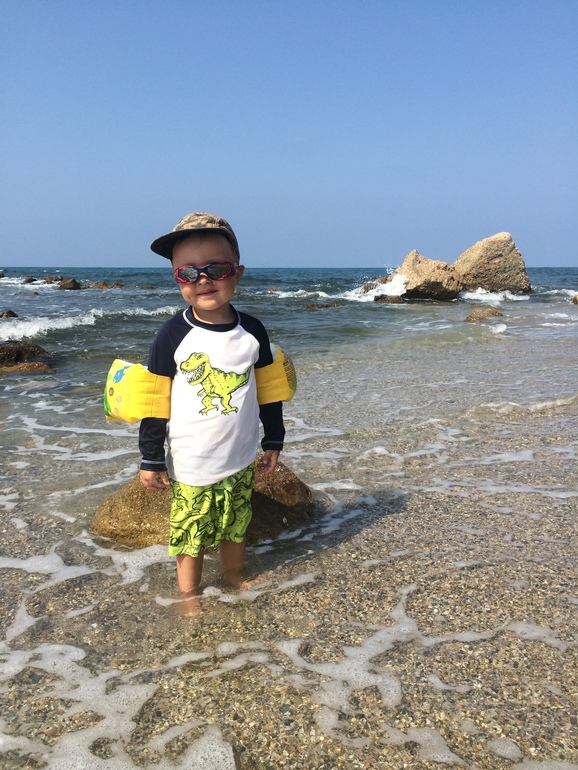 Да я как-то не подумала, что не смогу удержать ребёнка на берегу))