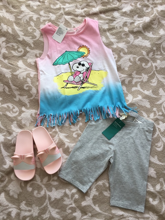 1)Купальник Крокид 128-134 ( на мой взгляд маломерит на размер как минимум) , шлепки плей ту дей в размер